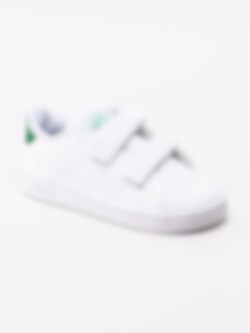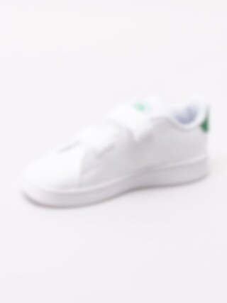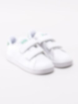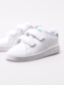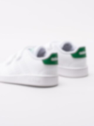 Vita första-gå sneakers Advantage för små barn från Adidas tillverkade i syntet med plös i meshtyg. Stilrena sneakers till dem små och ta sina första steg i. Broderad, grön logga på plös och grönt övre bakparti med logga. Perforerade 3 stripes på in- och utsidan som detalj. Textilfodrade med löstagbar innersula. Vit yttersula med hexagon-mönster.