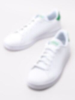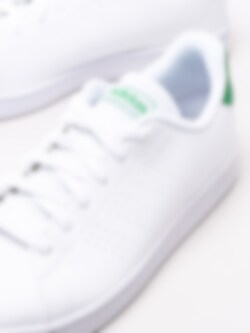 Vita sneakers Advantage i juniorstorlekar från Adidas tillverkade i syntet. Stilrena vita sneakers som aldrig kan gå fel under våren eller sommaren! Perforerade 3 Stripes på in- och utsidan som detalj. Grönt bakparti och broderad, grön logga på plös. Platt 6-håls snörning i bomull så du enkelt kan anpassa skorna efter din fot. Klassiska sneakers för juniorer som kan användas att göra en dressad look mer street!