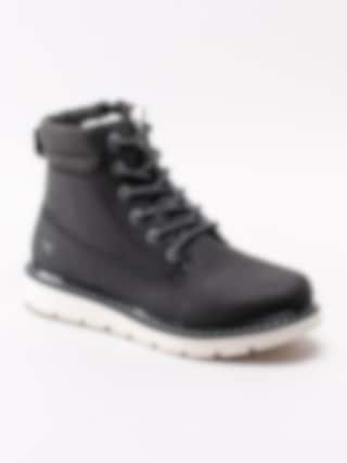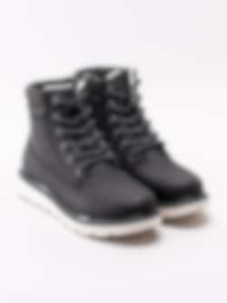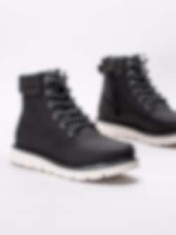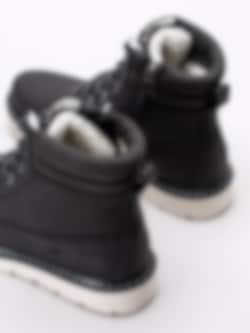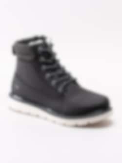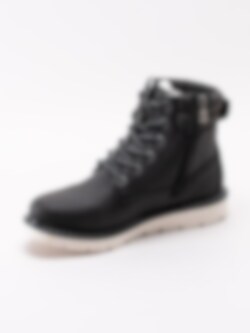 Svarta snörkängor Avery från North tillverkade i skinnimitation. Klassiska varmfodrade snörkängor med ljus sula. 6-håls snörning med guldfärgade öljetter så man kan justera passformen för att sedan använda dragkedjan på insidan som öppning.