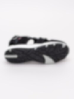 Svarta sandalskor Thrill II från Viking tillverkade i meshtyg med partier i syntet. Sömlös logga på utsidan av den förstärkta tån. Tvättbar i maskin på max 30 grader. Hälrem med kardborre som öppning och grå resårsnörning med svart snörstopp för att anpassa passformen. Svart foder i textil och grå innersula i skinn med sömlös logga. Vit mellansula med svart yttersula i gummi med mönster och konturerad logga i hälen.