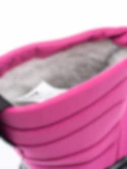 Rosa, supervarma stövlar Putkivarsi från Kuoma tillverkade i nylon. Materialet är behandlat som gör stöveln vattenavvisande. Logga på framparti av skaftet. Reflex på fram- och bakparti. Upp till storlek 26 är det ljusgrått foder med löstagbar innersula i ull medan från storlek 27 och större är det mörkgrått foder med löstagbar innersula i teddy pile. Förstärkt fot i syntet. Svart yttersula i syntet med grovt mönster och logga. Efter tvätt, glöm inte att impregnera stöveln för att göra den vattenavvisande.