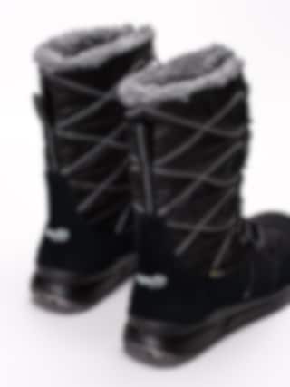 Svarta vinterstövlar Merida Stiefel från Superfit tillverkade i glansigt tyg med botten i mocka och syntet. Teddyfodrade vinterstövlar med Gore-Tex som håller dig varm och torr om fötterna under vinteraktiviteterna. Vita sömmar som detalj. Resårsnörning med dragsko för att kunna få en snävare passform.