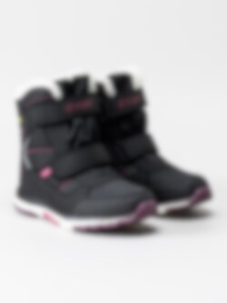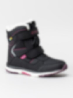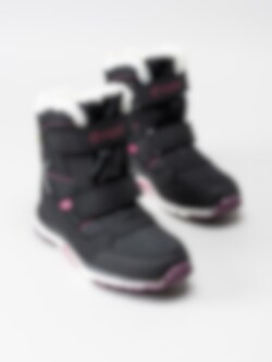 Svarta vinterkängor Ginden i textil och syntet från ZigZag. Fleecefodrade kängor med löstagbar innersula med rosa detaljer. Skorna har ett membran som gör dem vattentäta.
