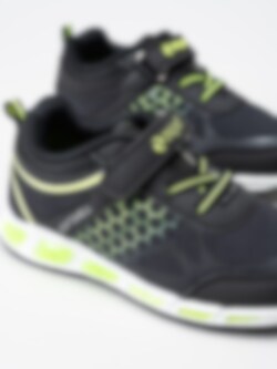 Dessa skor har ett inbyggt batteri som har en begränsad livslängd. Vilket innebär att när lamporna slutar blinkar så är det inte reklamationsgrundande. Batterierna ska sorteras som elavfall.