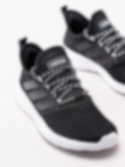 Svarta sportskor Lite Race RBN från Adidas i en utmärkt dra-på modell tillverkad i meshtyg som känns skön mot foten. Svarta sömlösa 3-stripes på in- och utsidan som detalj. Vit broderad logga på plös. Utrustad med Ortholite innersula och Cloudfoam sula för ökad komfort. Svartvit 4-hål snörning i polyester för att justera passformen. Hälla på bakskaft som hjälpmedel vid påtagning. Svart foder och innersula i textil med sömlös logga. Vit yttersula i syntet med rutigt mönster.