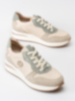 Bugatti - Venice - Beige sneakers med gröna detaljer