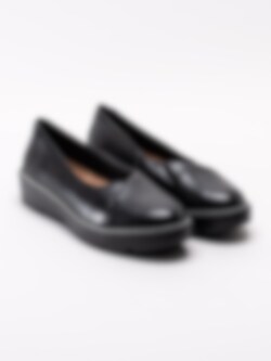 Clarks - Un Balsa Go Leather - Svarta ballerinaskor med omlott framparti