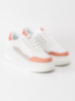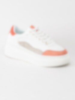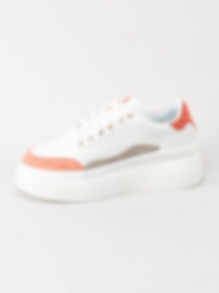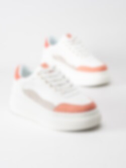 Duffy - Vita platåsneakers med korallfärgade detaljer