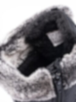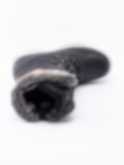 Svarta vinterstövlar Frosty Lady från Eskimo tillverkade i syntet med skaft i textil. Grå skaftmudd i fuskpäls som detalj. Utrustad med ett membran som gör stöveln vattentät samtidigt som den andas. Dragkedja på insidan som öppning och svartvit snörning i polyester på 5 hål med öljetter i silver för att justera passform. Präglad logga på utsidan och på plös. Svart foder och löstagbar innersula i teddy pile. Vit mellansula med svart rand. Svart yttersula i syntet med vågigt mönster.