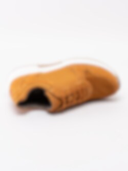 Senapsgula sportskor från Gabor tillverkade i mocka med partier i meshtyg. Utrustad med Rolling Soft sula som får dig att sväva fram! Gul platt 5-håls snörning i bomull som öppning. Grått foder i textil och innersula i skinn med logga. Låg klack på ca 3 cm. Vit mellansula med beige yttersula i syntet med mönster och logga i mitten.