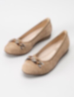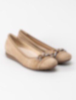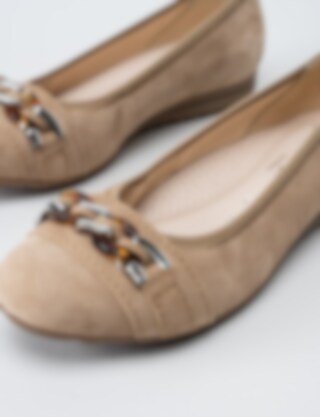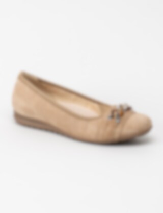 Beige ballerina från Gabor i mocka med dekorativt spänne på ovansida.