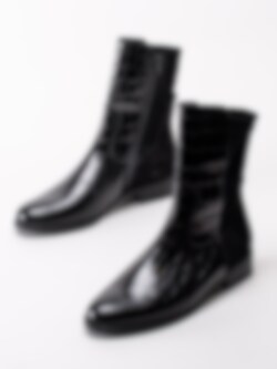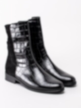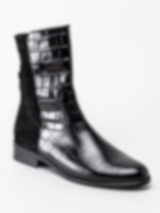 Gabor - Rhodos - Svarta boots i skinn med crocomönster