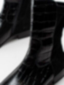 10203034 Gabor Rhodos 52.742-67 Black Svarta boots i skinn med crocomönster-1