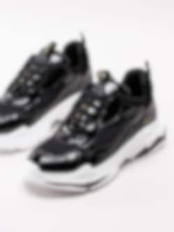 Happy Shoes - Happy Posh - Svarta chunky sneakers med lack