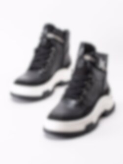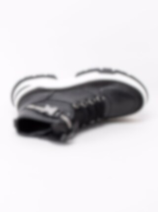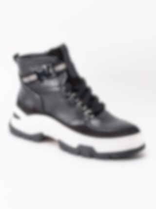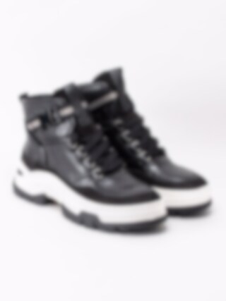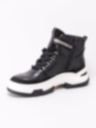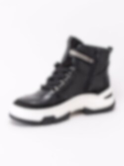 Svarta pjäxkängor från Jana i skinn. Sportig modell i pjäxinspirerad design och grov sula. Tillverkad av återvunna petflaskor.