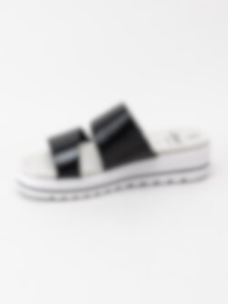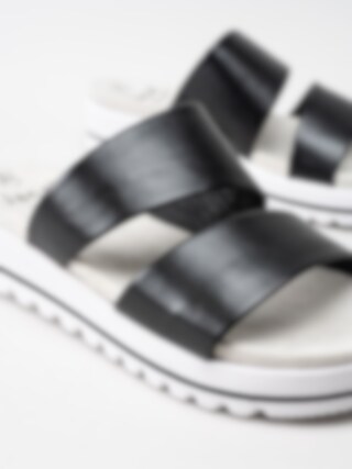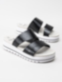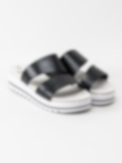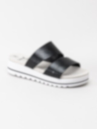 Svarta slip in sandaler från Jana i skinn med vit snygg sula.
