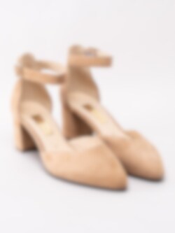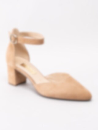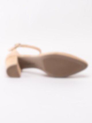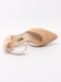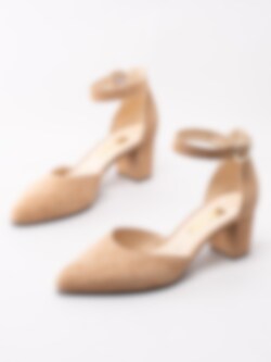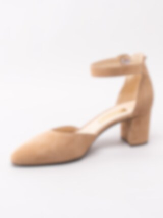 Beige öppna pumps från Gabor i mocka. Dressade och stilrena öppna pumps perfekt till sommarens festligheter. Nätt design med spetsig tå och täckt häl. Justerbar vristrem i mocka med rektangulärt spänne. Skinnfodrade och innersula i skinn med guldfärgad logotyp i hälen. Klädd klack i mocka på ca 6 cm. Beige yttersula i syntet med konturerad logotyp.
