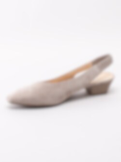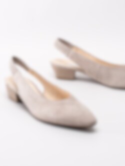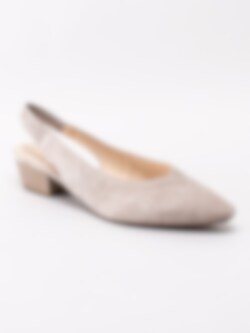 Beige pumps från Gabor i mocka med slingback. Dressade pumps i en klassisk sommarmodell som du enkelt trär på tack vare sin elastiska hälrem. Skinnfodrade och innersula i skinn med präglad guldfärgad logotyp i hälen. Beige klossklack i träimitation på ca 4 cm. Beige yttersula i syntet med slingrande mönster och logotyp.