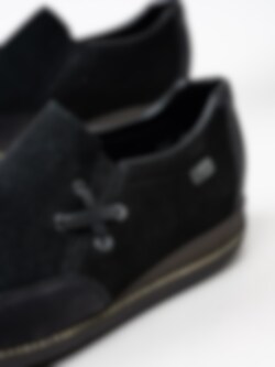Svarta promenadskor från Rieker tillverakde i mocka. Håll dig torr med dessa promenadskor med Rieker-Tex, som gör skorna vattenavvisande.