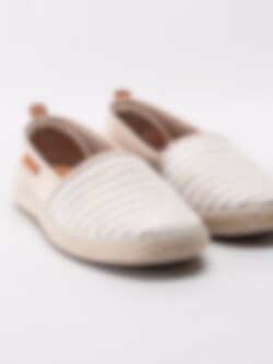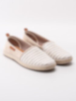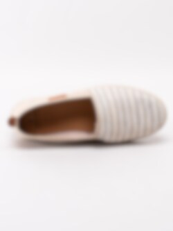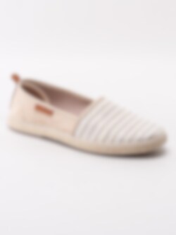 Beige espadriller Mar från Marstrand i textil. Sköna espadriller med randigt framparti och silvermetalliska sömmar som detalj. Typiska sommarskor som du smidigt och enkelt trär på foten och kan matchas till många sommaroutfits. Läderbit med präglad logotyp på utsidan. Foder i textil med skinnklädd, löstagbar innersula som känns skönt mot foten. Repklädd mellansula med beige yttersula i syntet.