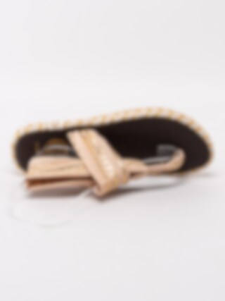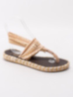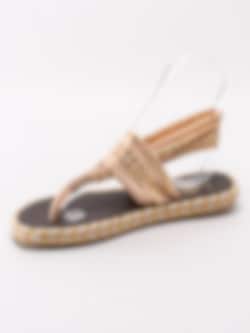 Rosa resårsandaler Ganika-Inka från Nalho i tunt elastiskt tyg. Snygga och sköna sommarsandaler med guldmetalliskt mönster som du trär på foten. Tack vare det elastiska materialet omsluter sandalerna foten och de sitter bra på. Den fantastiskt mjuka innersulan som är tillverkad av yoga matta känns som att gå på moln - du kommer inte ångra dig efter du har satt på dig dessa. Repklädd mellansula som är klassiskt för espadriller med ränder i guld som detalj. Beige, halkfri yttersula i syntet med konturerade loggor.