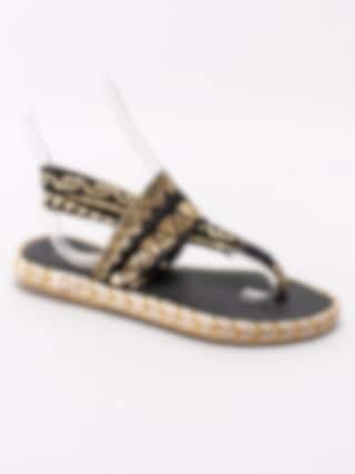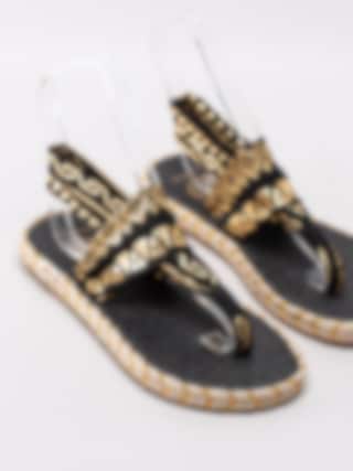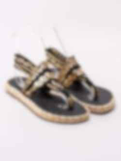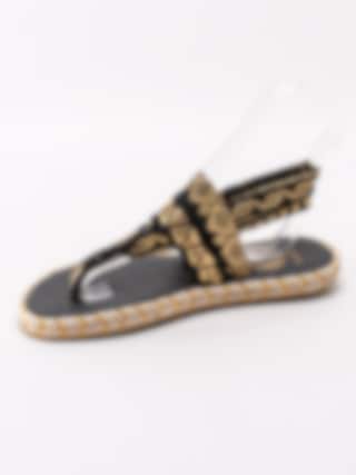 Nalho - Ganika-Inka - Svarta resårsandaler med guldmetalliskt mönster