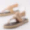 Svarta resårsandaler Ganika-Inka från Nalho i tunt elastiskt tyg. Snygga och sköna sommarsandaler med guldmetalliskt mönster som du trär på foten. Tack vare det elastiska materialet omsluter sandalerna foten och de sitter bra på. Den fantastiskt mjuka innersulan som är tillverkad av yoga matta känns som att gå på moln - du kommer inte ångra dig efter du har satt på dig dessa. Repklädd mellansula som är klassiskt för espadriller med ränder i guld som detalj. Beige, halkfri yttersula i syntet med konturerade loggor.