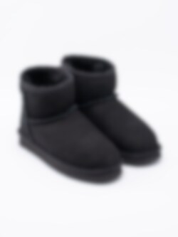 Svarta surfingboots Kellers från North tillverkade i mocka med fårskinnsfoder. Utrustad med Scotchguard Protector som gör skon starkt vattenavvisande. Drag-på modell för enkel på- och avtagning. Sydd läderbit på bakparti med logga. Svart foder och ljus innersula i fårskinn för att hålla dig varm under kalla vinterdagar. Svart yttersula i syntet.