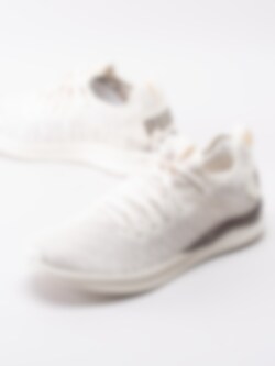 Vita sportskor Ignite Flash Luxe för kvinnor från Puma tillverkade i stickad meshtyg. Dra-på modell för dig som är på språng. Utrustad med Ignite mellansula med skumgummi för ökad komfort. Vit, asymmetrisk 10-håls snörning i polyester för att justera passformen. Vit hälla i nylon på plös med logga och bakskaft som hjälpmedel vid påtagning. Vitt foder och innersula i textil med sömlös logga. Vit hälclip med konturerad grå logga på bakparti. Ljusbeige yttersula i syntet med ljusrosa partier och logga.