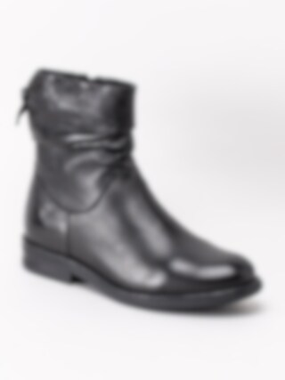 Svarta boots från S. Oliver i skinn. Rynkad effekt vid ovandel och dragkedja på insida.
