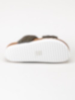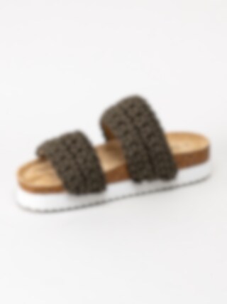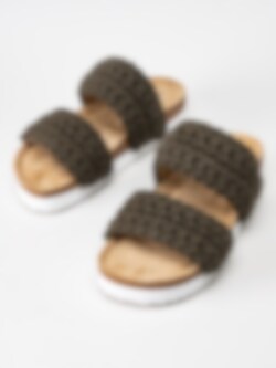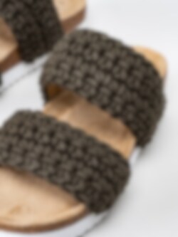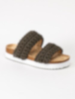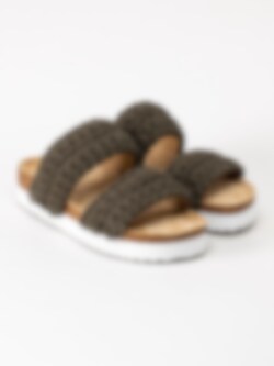 Gröna slip in sandaler tillverkade i grovt virkad textil från Duffy. Trendiga slippers med lite högre sula för bra komfort. Sandalerna är små i storleken.