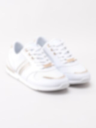 Tommy Hilfiger - Lightweight Metallic Trainers - Vita sportiga sneakers med gulddetaljer