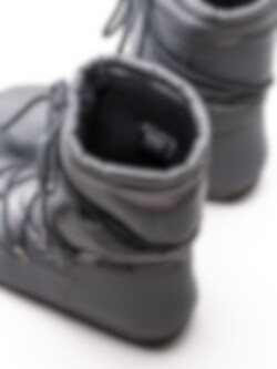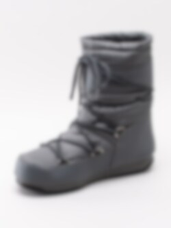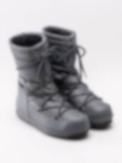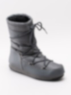Grå vinterstövlar Mid Nylon från Moon Boot. Tillverkade i nylon med botten i syntet. Coola retro-stövlar i en härlig grå färg som är det självklara valet på afterski. Utrustade med ett membran som gör stövlarna vattentäta så du kan känna dig säkert torr i snö och slask. Asymmetrisk snörning om du önskar att justera passformen något, annars är detta en modell som du bara enkelt drar på. Svart gummisula för att ge dig ett bra grepp under de flesta underlag.
