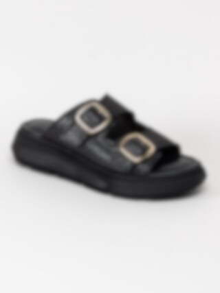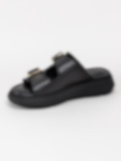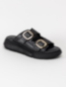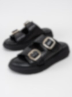 Svarta slip in platåsandaler från Tamaris i skinn.