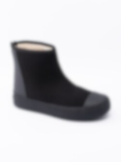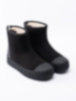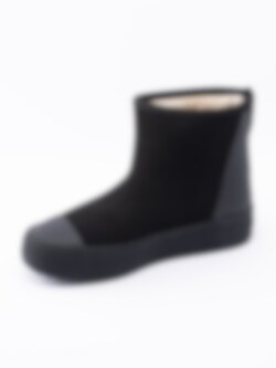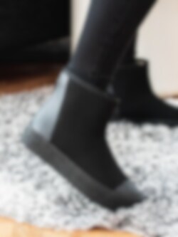 Svarta boots Arch Hybrid från Tretorn tillverkade i neopren. Vattentät sko för regninga och kalla dagar Tå- och bakparti i naturgummi. Dragkedja på bakparti med vattentät bälg som öppning. Beigt foder och löstagbar innersula i fuskpäls. Svart yttersula i gummi med mönster och logga. Modellen uppfattas som liten, du kan behöva gå upp en storlek.