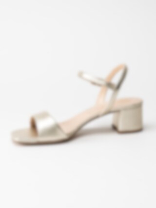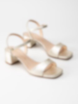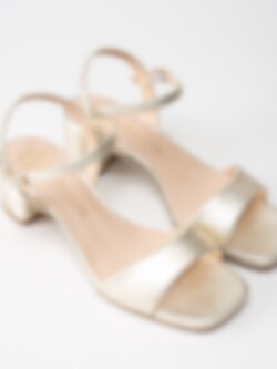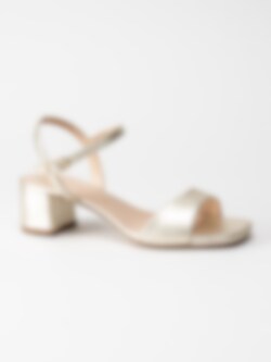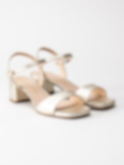 Guldfärgade sandaletter i skinn från Unisa. En klackhöjd på 4.5 cm. Snygga remsandaletter i en klassisk design som passar till alla sommar-outfits.