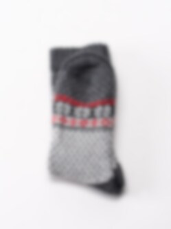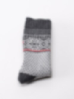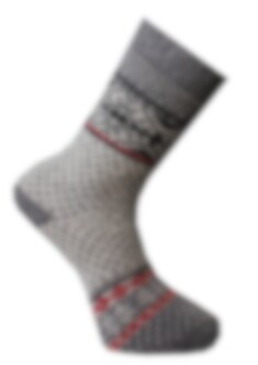 Ljusgrå ullstrumpor från Zokks med julmotiv. Sockan har frotté i både skaft och fot för bästa komfort och värme. Ull har en självreglerande temperatur, värmer när det är kallt och känns luftig när det är varmt.