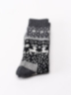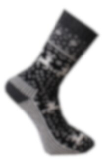 Svarta ullstrumpor från Zokks med julrenar som motiv. Sockan har frotté i både skaft och fot för bästa komfort och värme. Ull har en självreglerande temperatur, värmer när det är kallt och känns luftig när det är varmt.