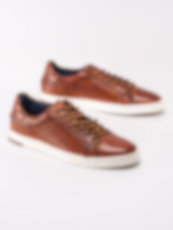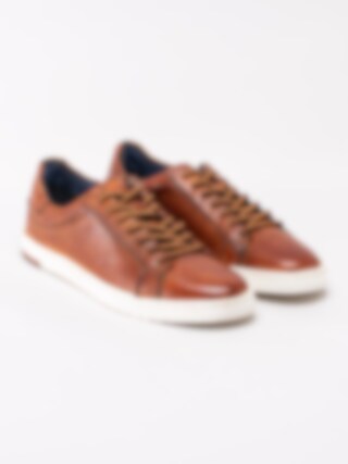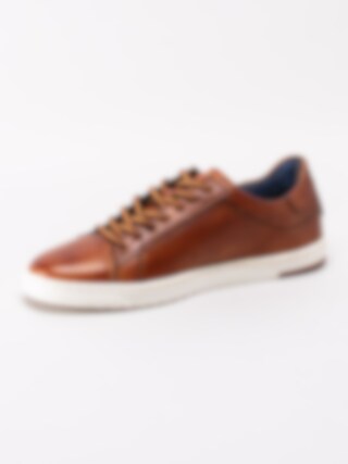 Bruna sneakers Orazio från Bugatti tillverkade skinn. Smidiga sneakers med resårsnörning som gör det enkelt för att dig att komma i och ur skorna. Präglad logga på plös. Snygga sneakers i mjukt fint läder som passar utmärkt till vardags. Textilfodrade med löstagbar innersula om egen sula önskas att användas. Vit sula på ca 2 cm med dekorativ söm.