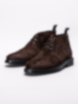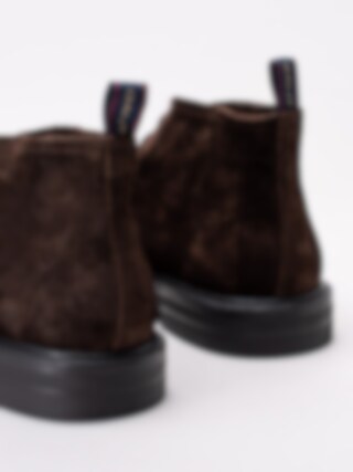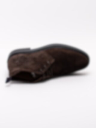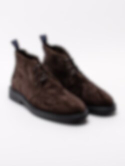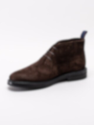 Mörkbruna ökenkängor Fargo från Gant tillverkade i mocka. Ankelhöga kängor med 3-håls snörning i en fin mörk färg, passar perfekt till blå jeans. Hälla på bakskaft som hjälpmedel vid påtagning. Skinnfodrade för en behaglig känsla mot foten. Tjock utstickande sula med klack.