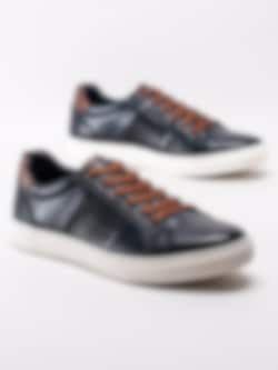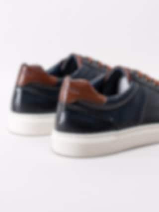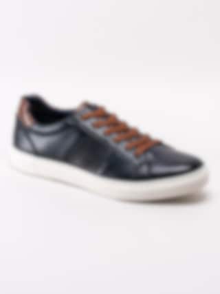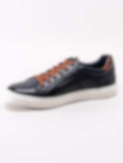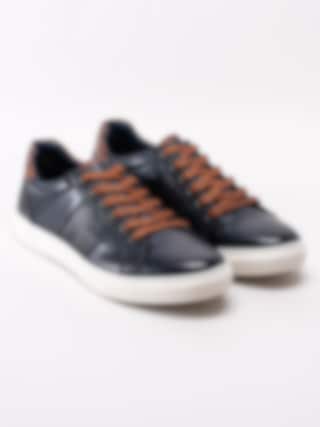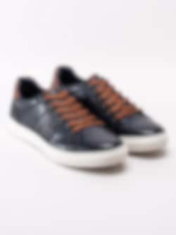 Playboy Footwear - Mörkblå sneakers i skinn med brun snörning