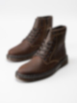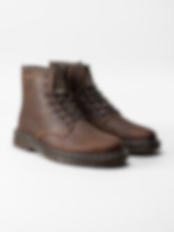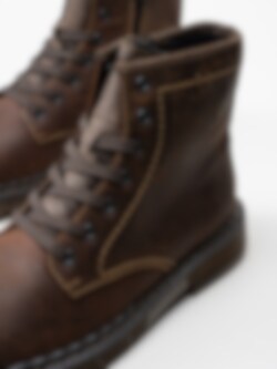 Bruna ullfodrade kängor i skinn från Rieker. 7 håls snörning för bättre passform. Perfekta till kallare väder.