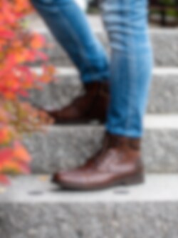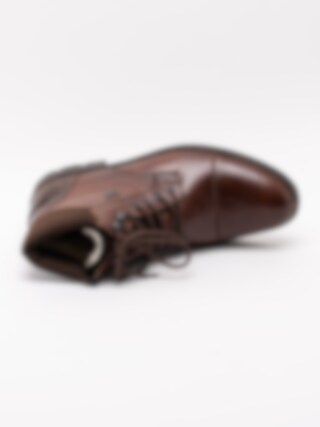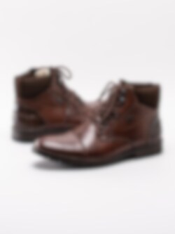 Mörkbruna snörkängor från Rieker tillverkade i skinn med skaftmudd och plös i mocka. Klassiska snörkängor med sömmar och struktur i skinnet som detalj. Utrustade med Rieker-Tex som gör skorna starkt vattenavvisande. Dessa kängor är för dig som önskar en klassisk modell men ändå vill hålla dig varm. Fodrade med varmt och gosigt ullfoder så du ska även kunna ha dessa under kalla temperaturer. Snörning för att du ska kunna justera passformen men sedan finns det en dragkedja på insidan som öppning.
