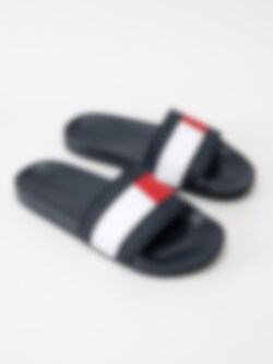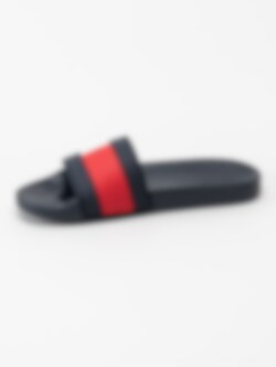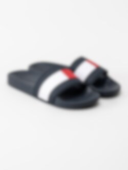 Marinblå slip in tofflor pool slides från Tommy Hilfiger med logga-detalj på ovansidan.