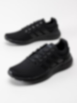 Svarta sportiga sneakers Lite Racer CLN 2.0 från Adidas med svart sula och svarta klassiska ränder.