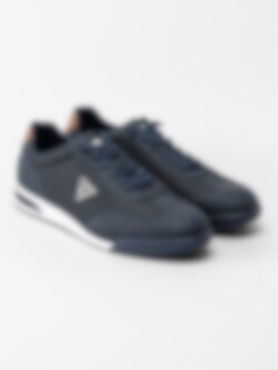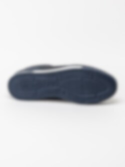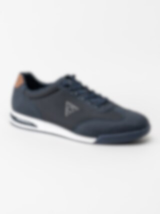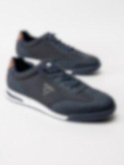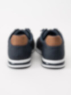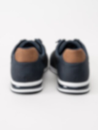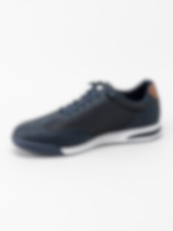 Marinblå dressad sneaker från Bugatti med bruna detaljer.