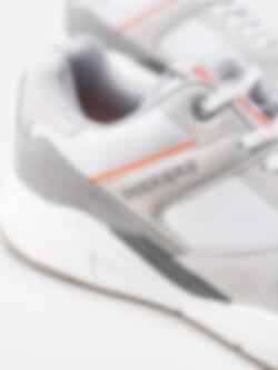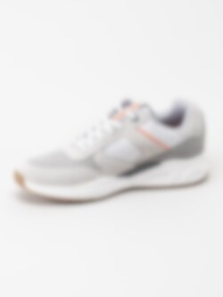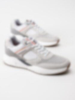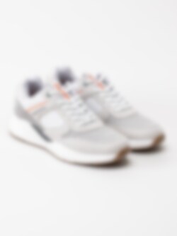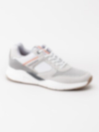Sportskor med 6 hålssnörning från Dockers by Gerli i olika grå nyanser och orange detaljer.