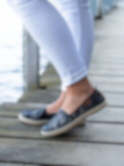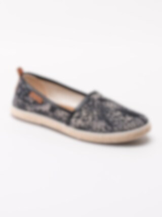 Leopardmönstrade slip on loafers Mjau från Marstrand tillverkade i textil med kant i svart syntet. Snygga slip on tygskor som är enkla och lätta att ta på. Textilfodrade med mjuk skinnsula. Repbeklädd mellansula som är klassiskt för en espadrillos-modell. Ljus yttersula i syntet.