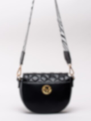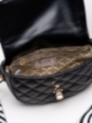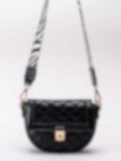 Svart axelremsväska från NYPD tillverkad i veganskt läder med kviltad design. Flapbag i en chic design med cool zebramönstrad axelrem. Guldfärgat lås som du vrider för att öppna väskan. Smyckeslogga på baksidan som detalj. Försedd med två fack varav ett som du kan försluta med dragkedja.