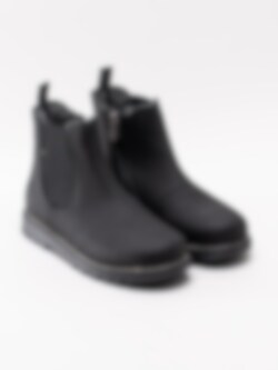 Svarta chelsea boots Skafta från Kavat. Tillverkade i Cross Country skinn som är starkt avvisande mot vatten och smuts. Enkla att torka av och rengöra. Varmfodrade boots med ullblandning som håller dig varm. Klassiska chelsea boots med dragkedja på insidan för enkel på- och avtagning. Markerande, ljus söm längs sulkant. Grovt mönstrad yttersula i gummi med präglad logga i mitten.